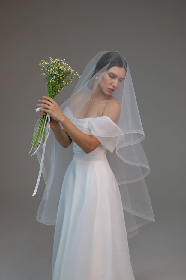 Minimalist Cascading Veil, One Layer Satin Ribbon Edge Veil, Simple Bridal Veil