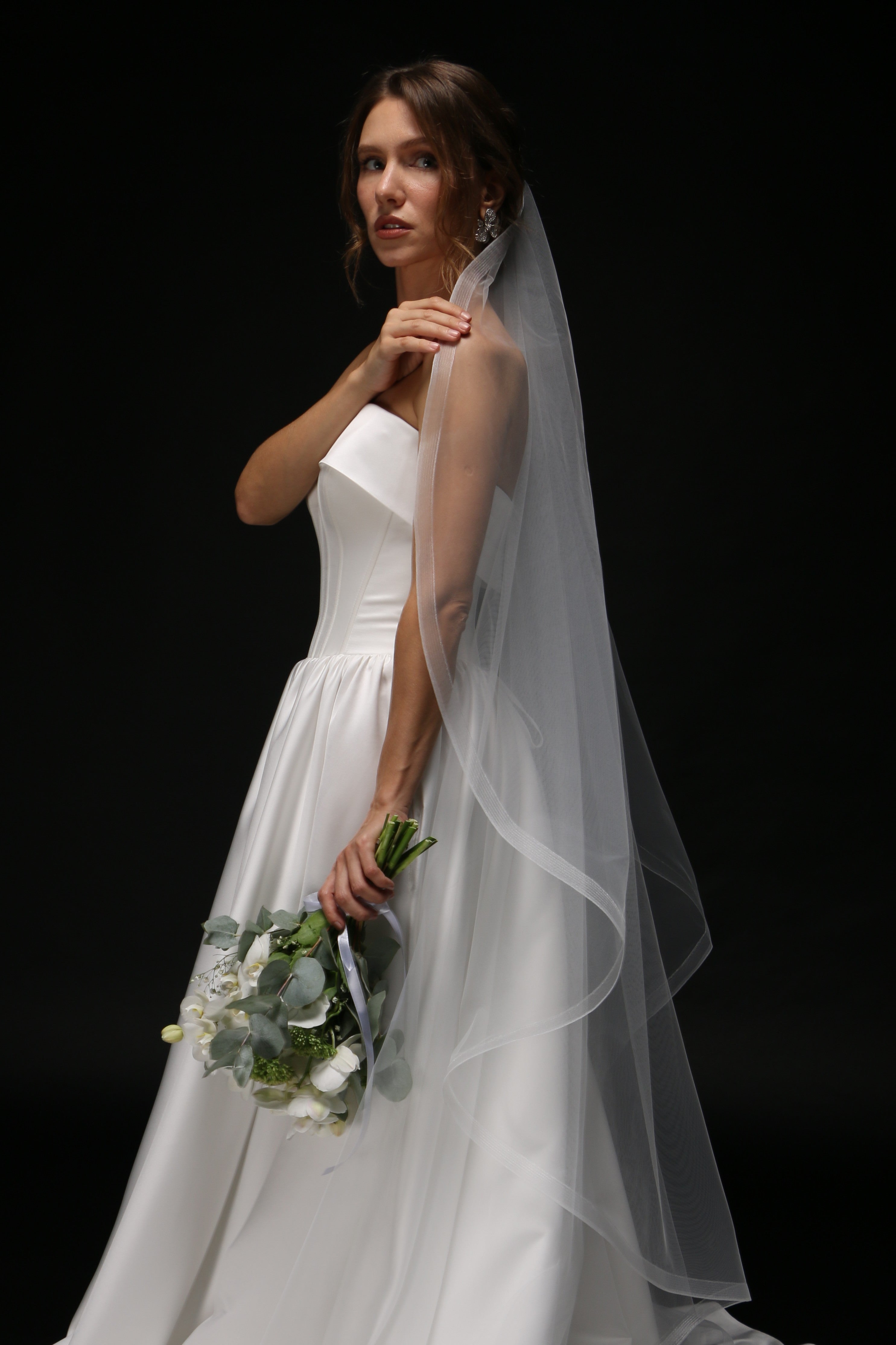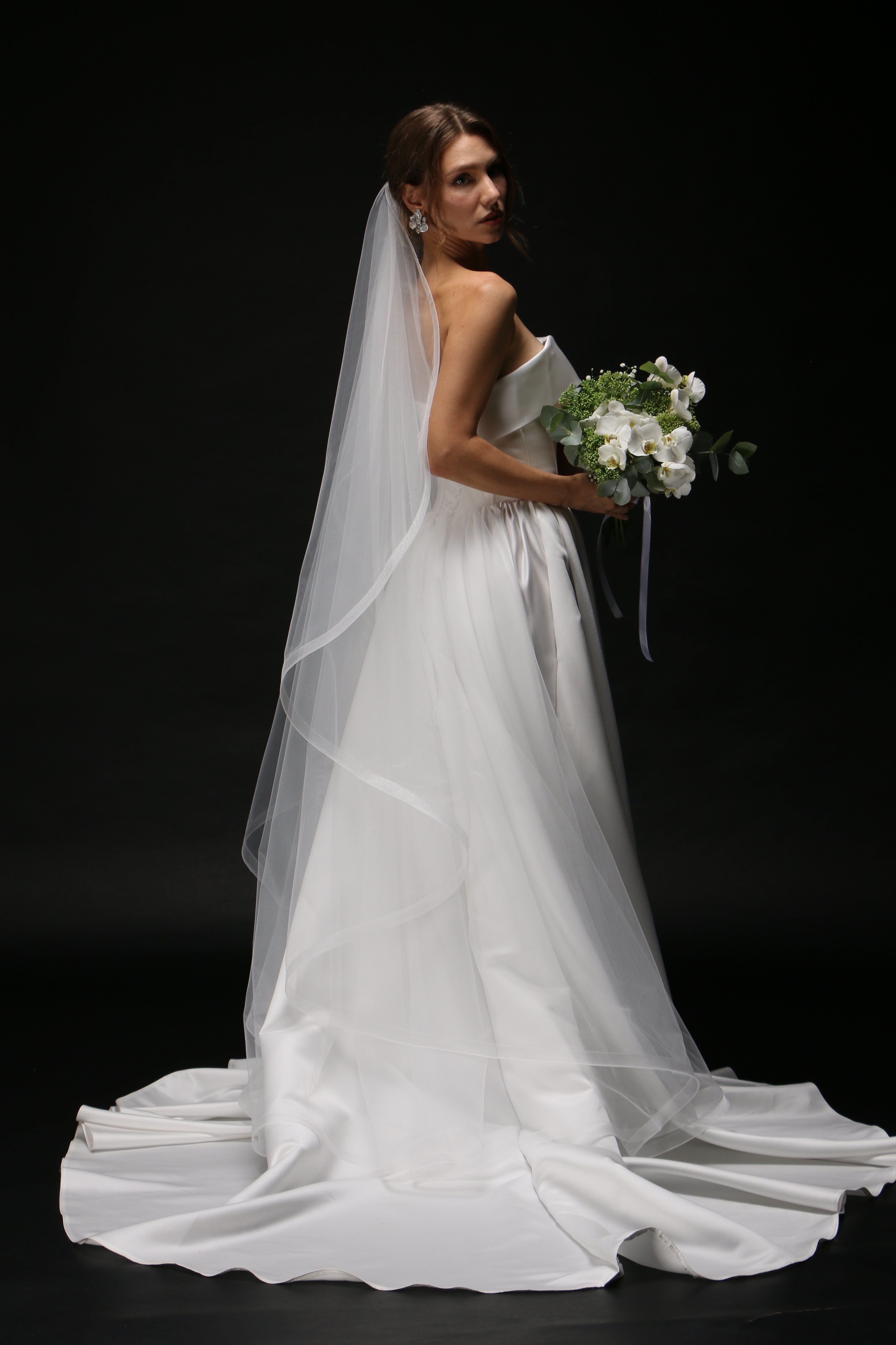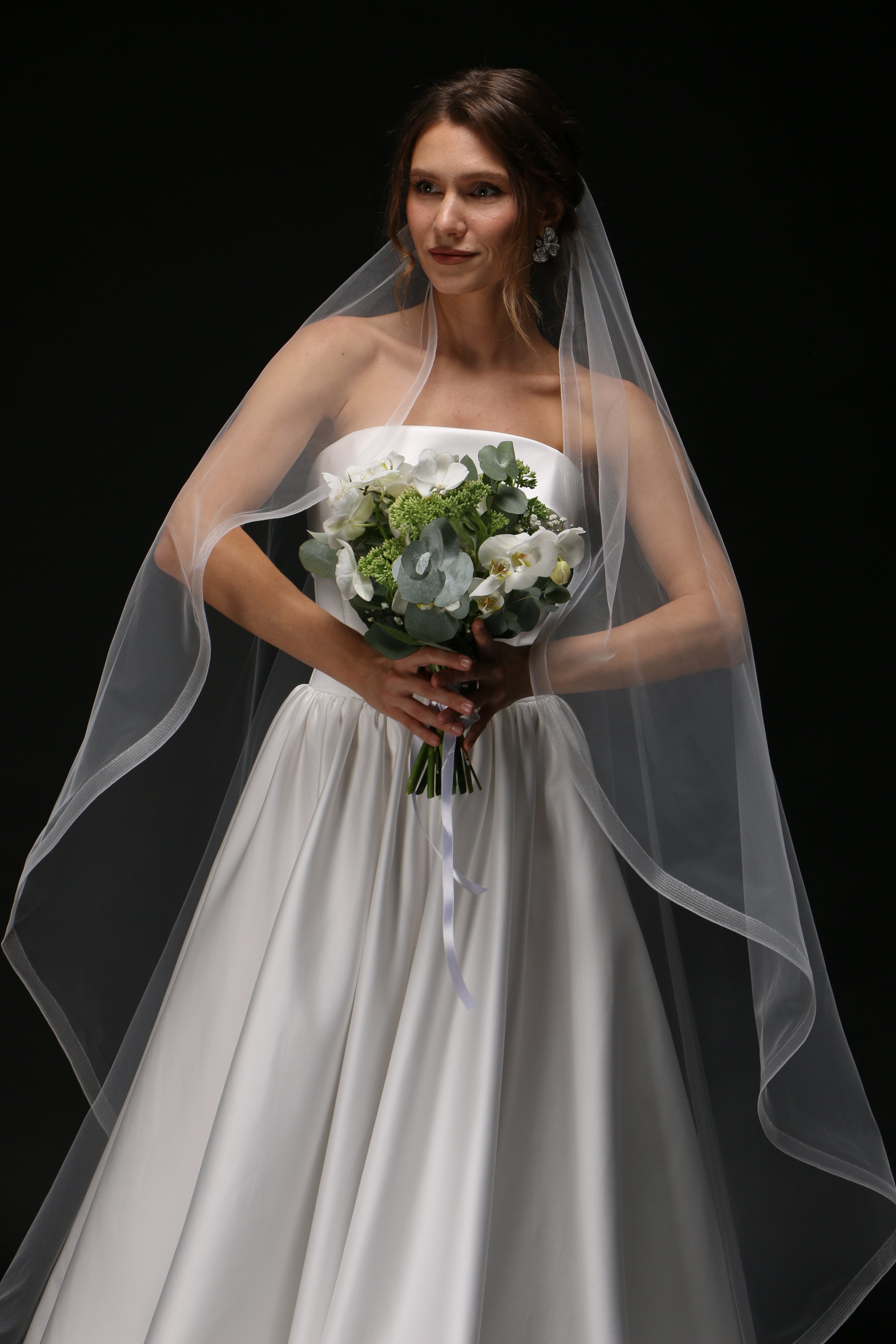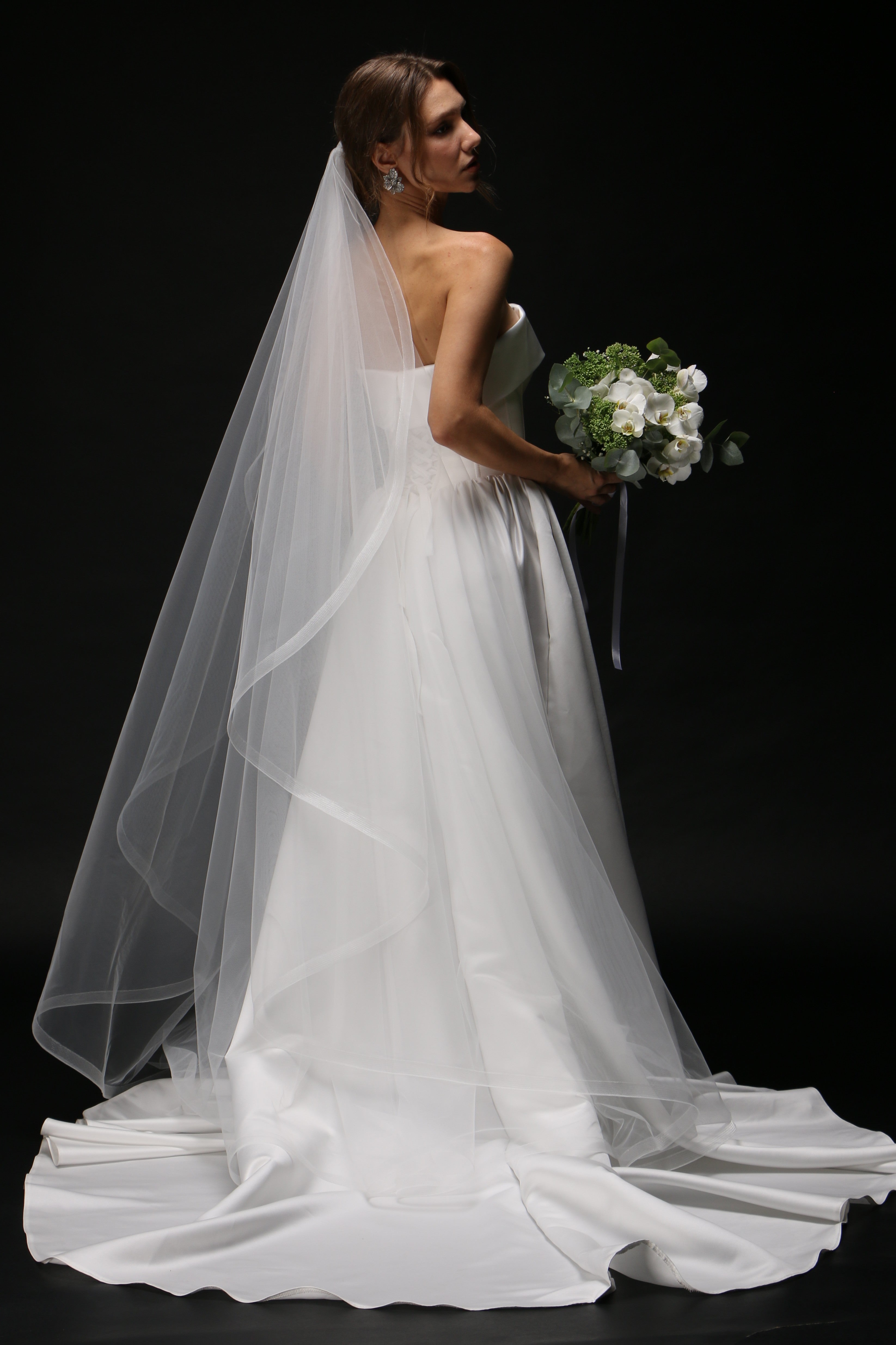 Cascade One Tier Bridal Veil with Horsehair Trim β Classic & Elegant Wedding Veil