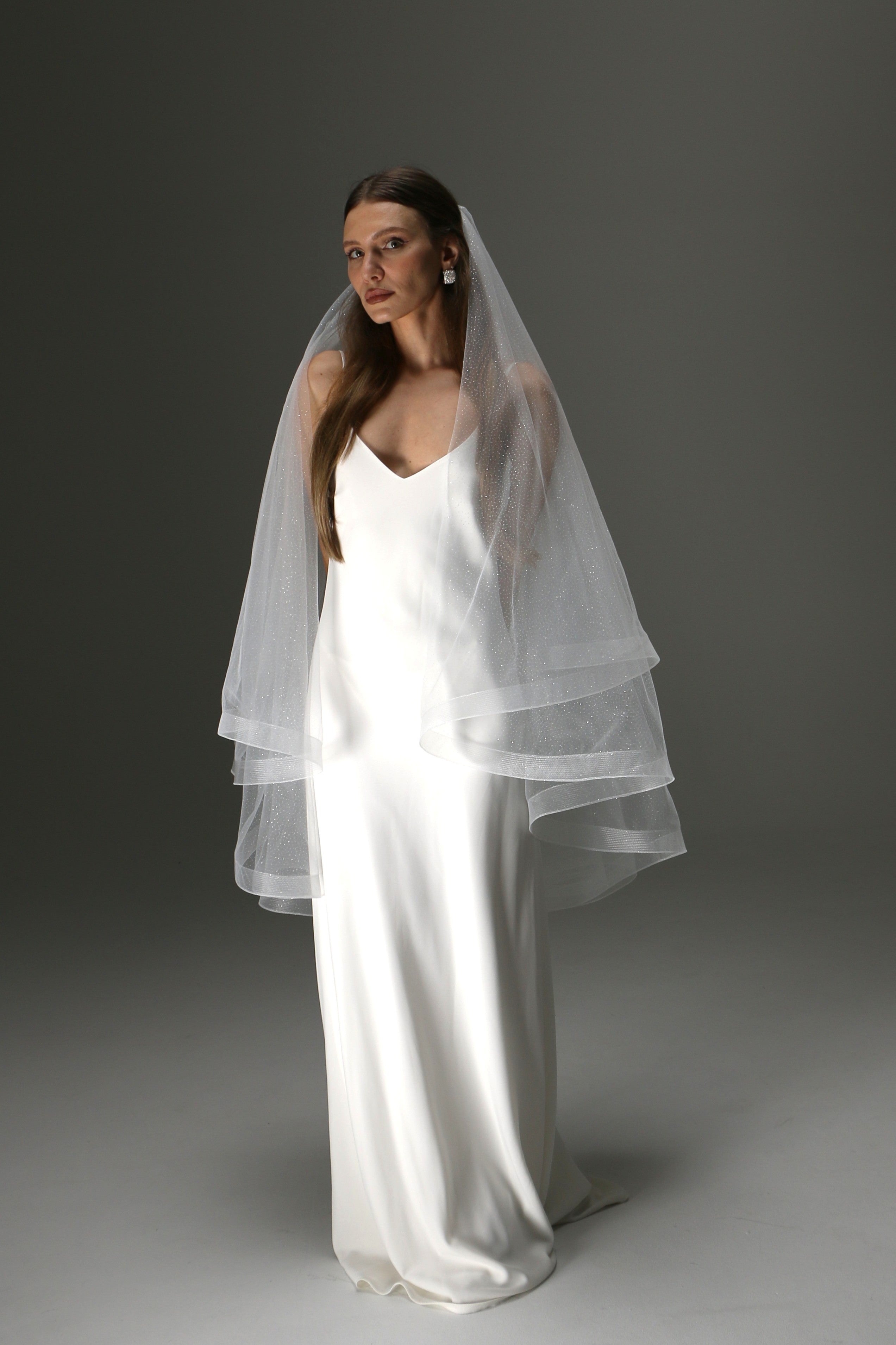 Glitter Horsehair Cascade Veil – Double Layer Bridal Veil