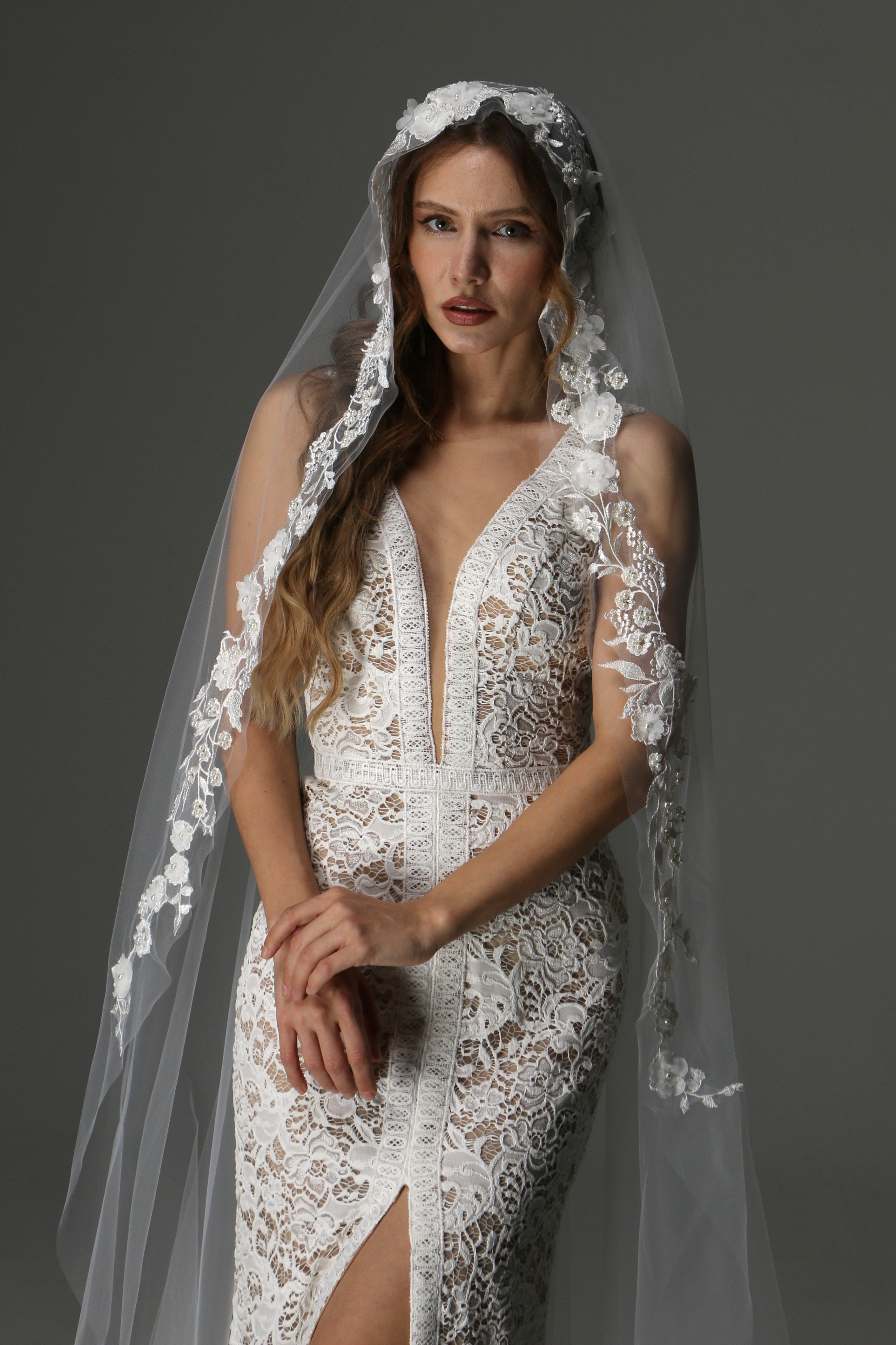 Lace Appliqué Wedding Veil: Ethereal One-Tier Mantilla, Ivory Tulle