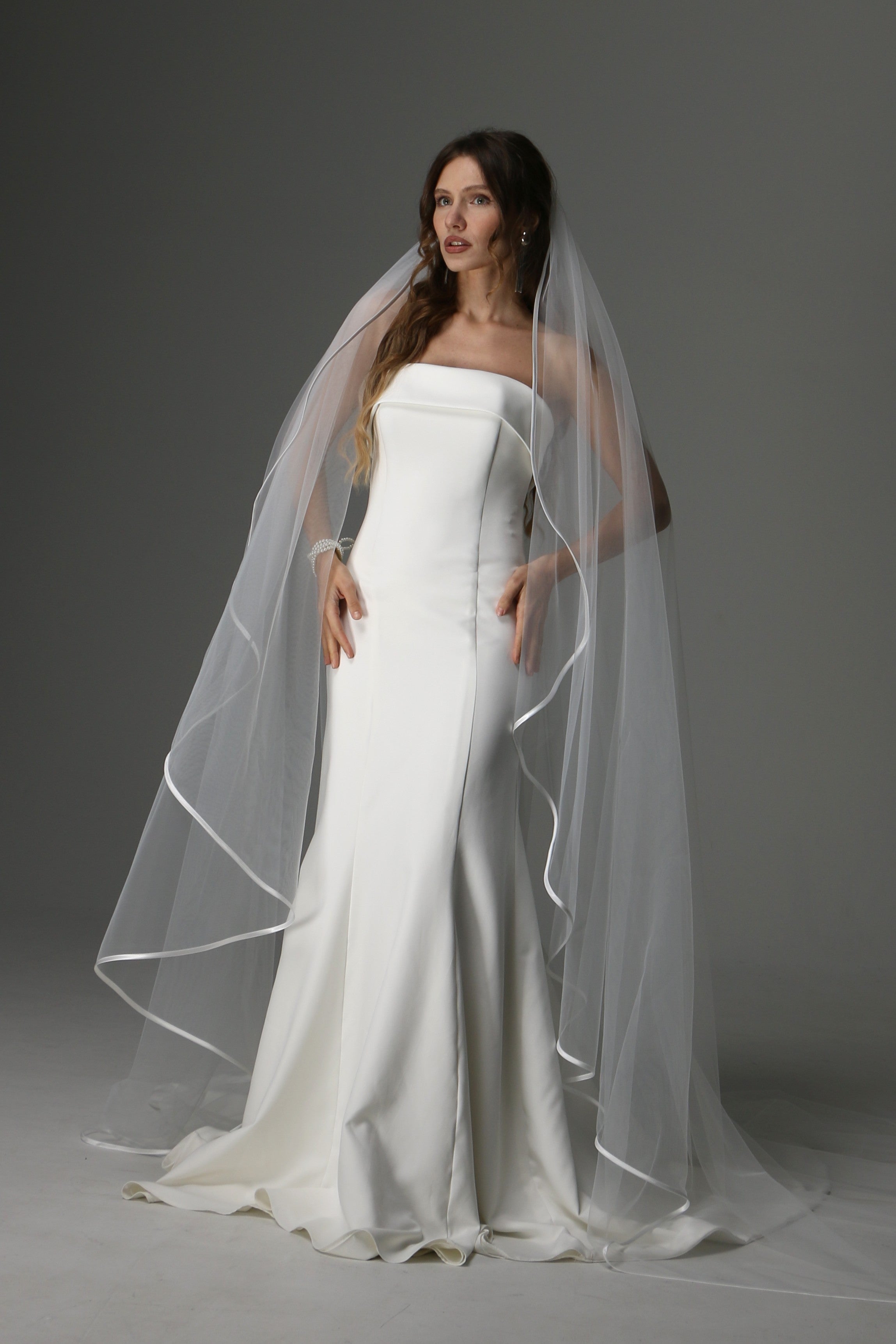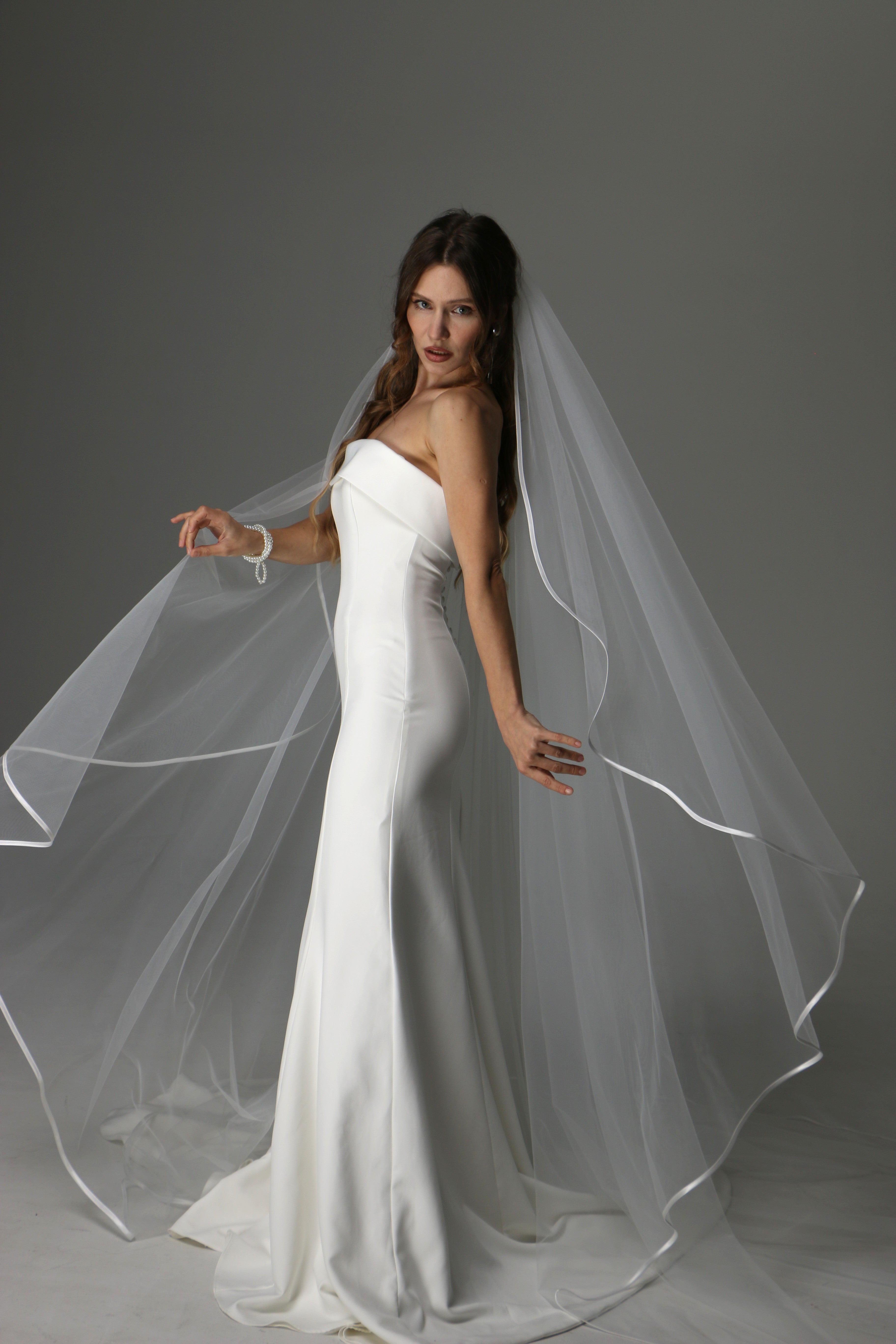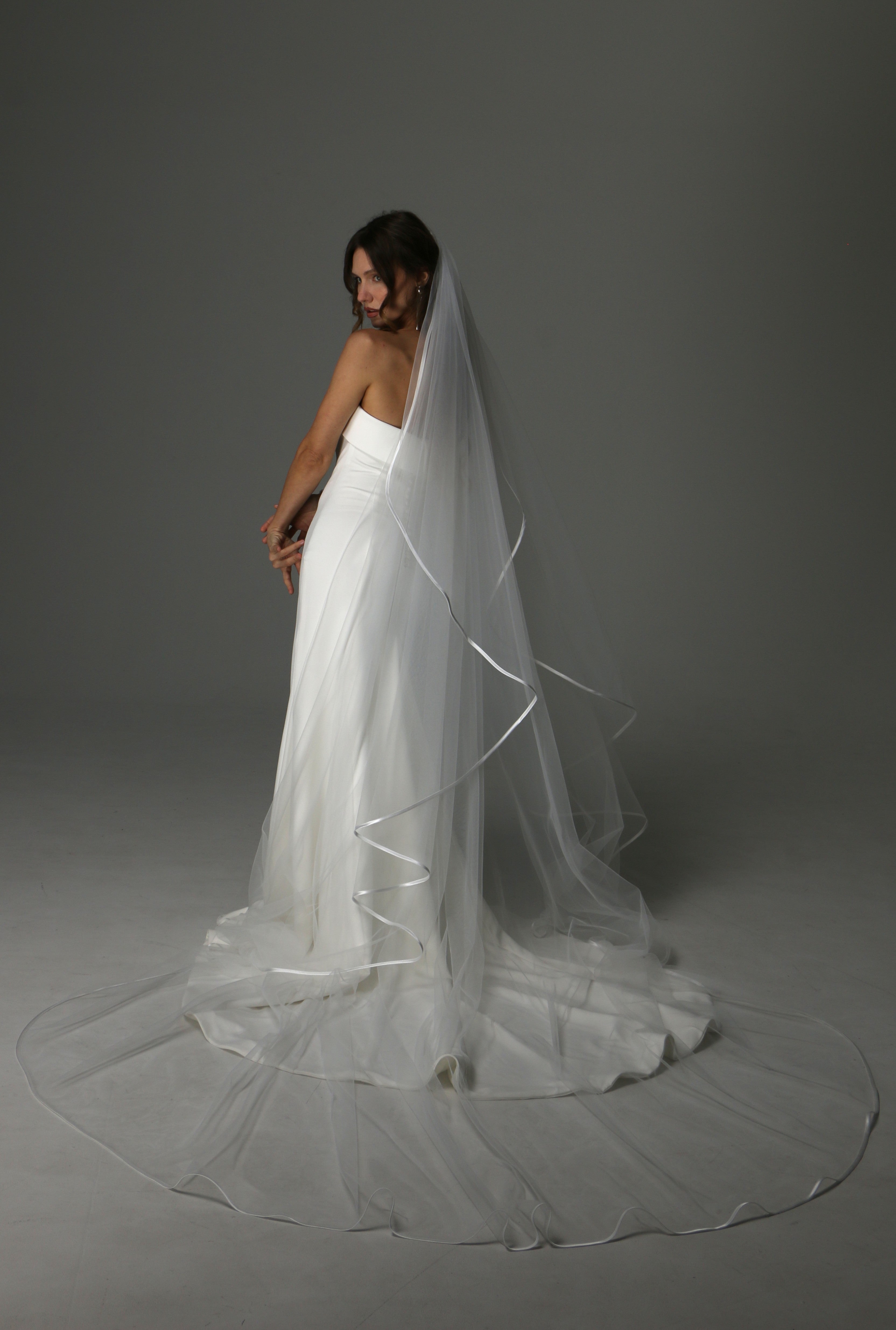 Minimalist Cascading Veil, One Layer Satin Ribbon Edge Veil, Simple Bridal Veil