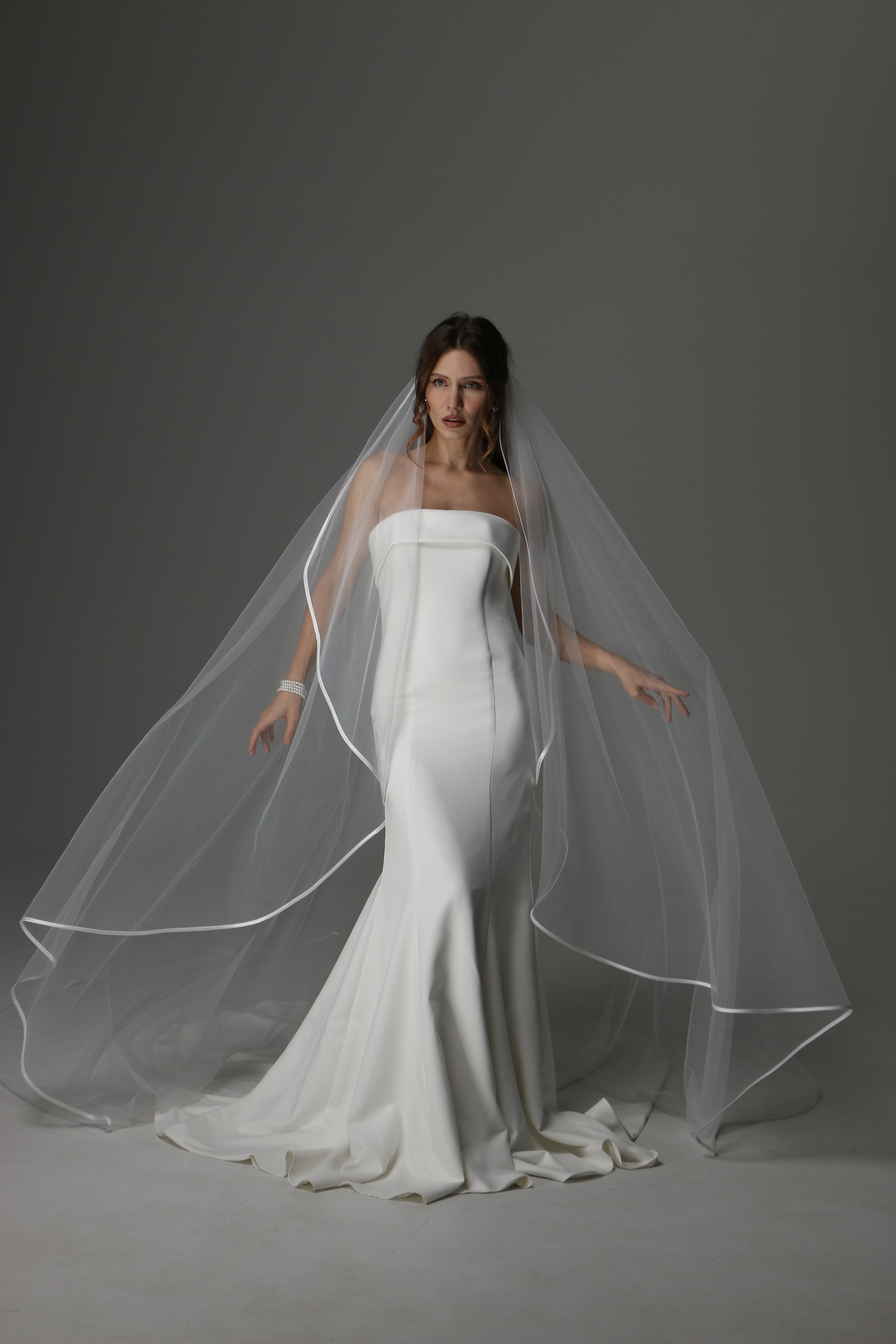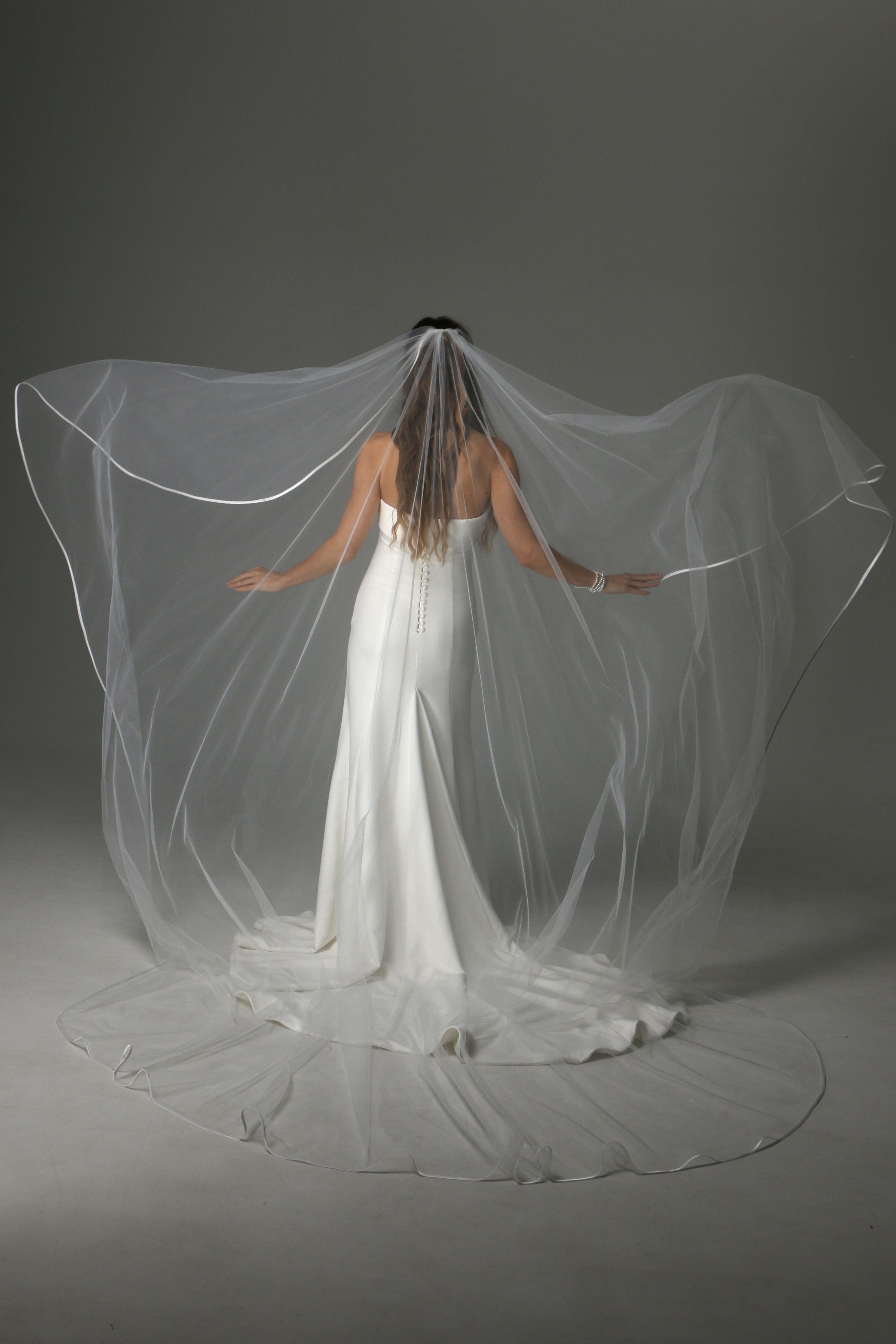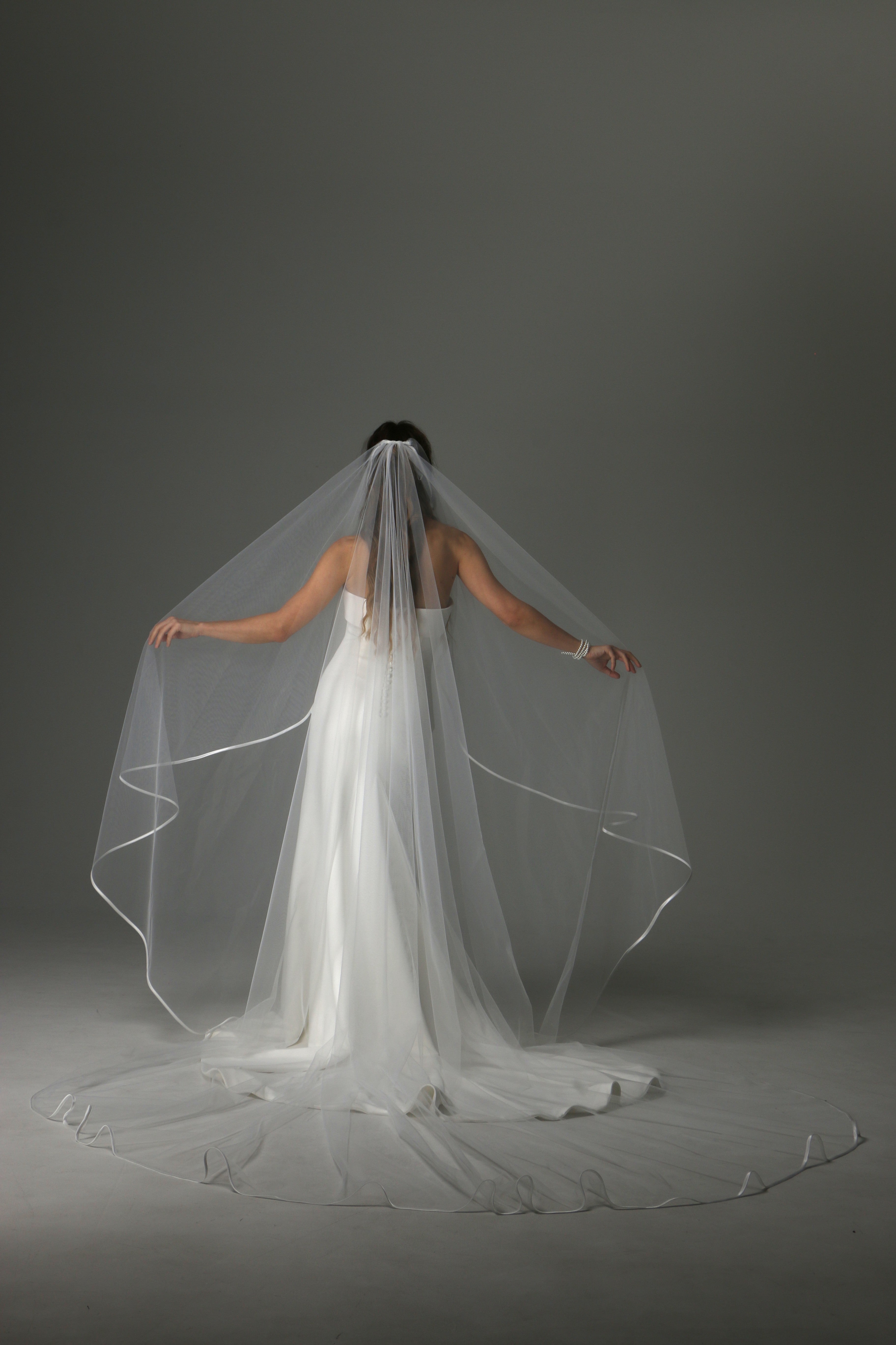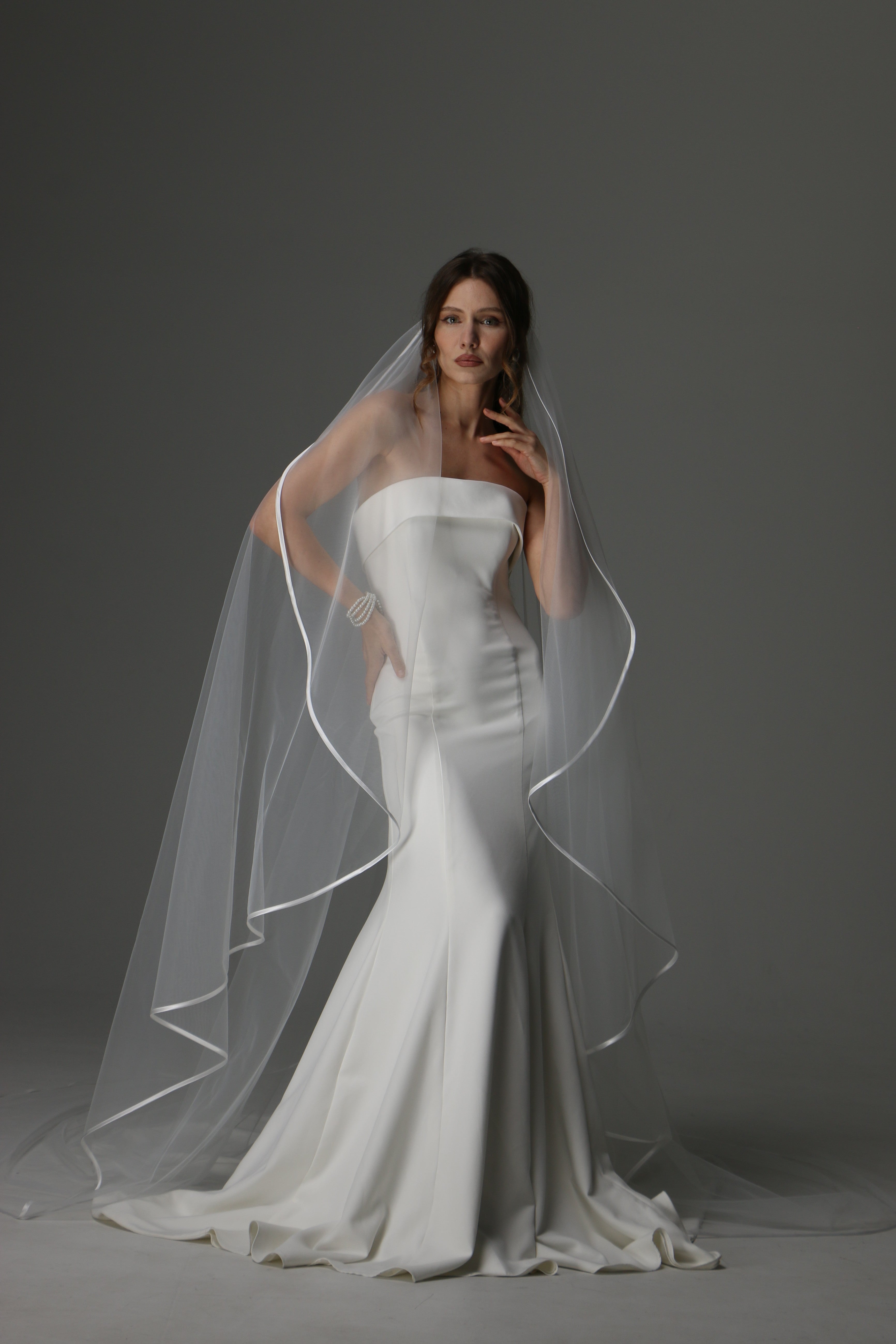 Minimalist Cascading Veil, One Layer Satin Ribbon Edge Veil, Simple Bridal Veil