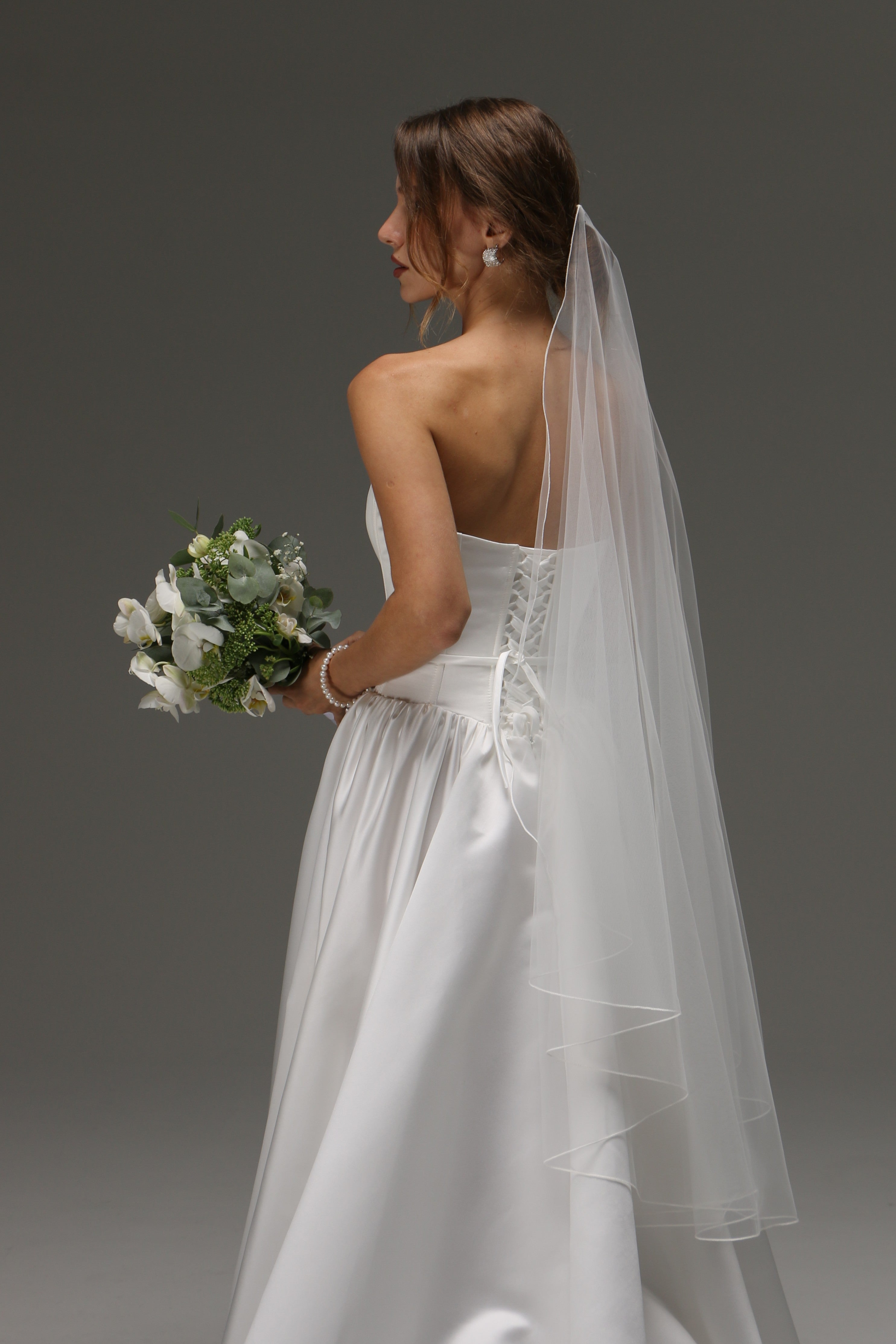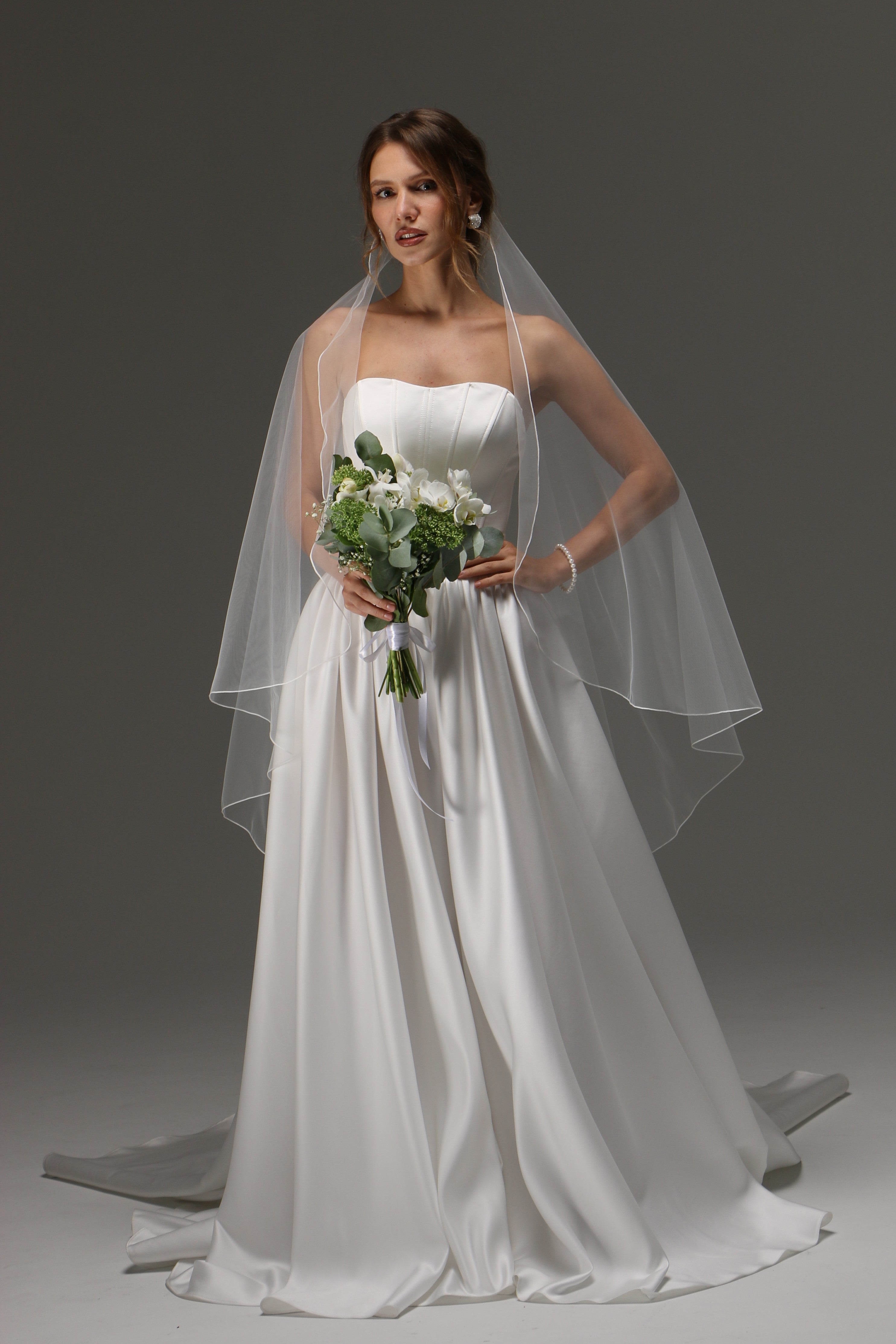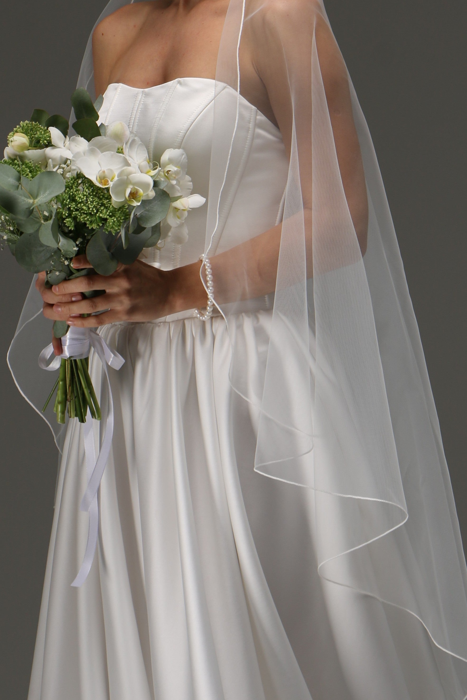 One Tier Cascade Veil with pencil Edge | Soft Classic Ivory Wedding Veil