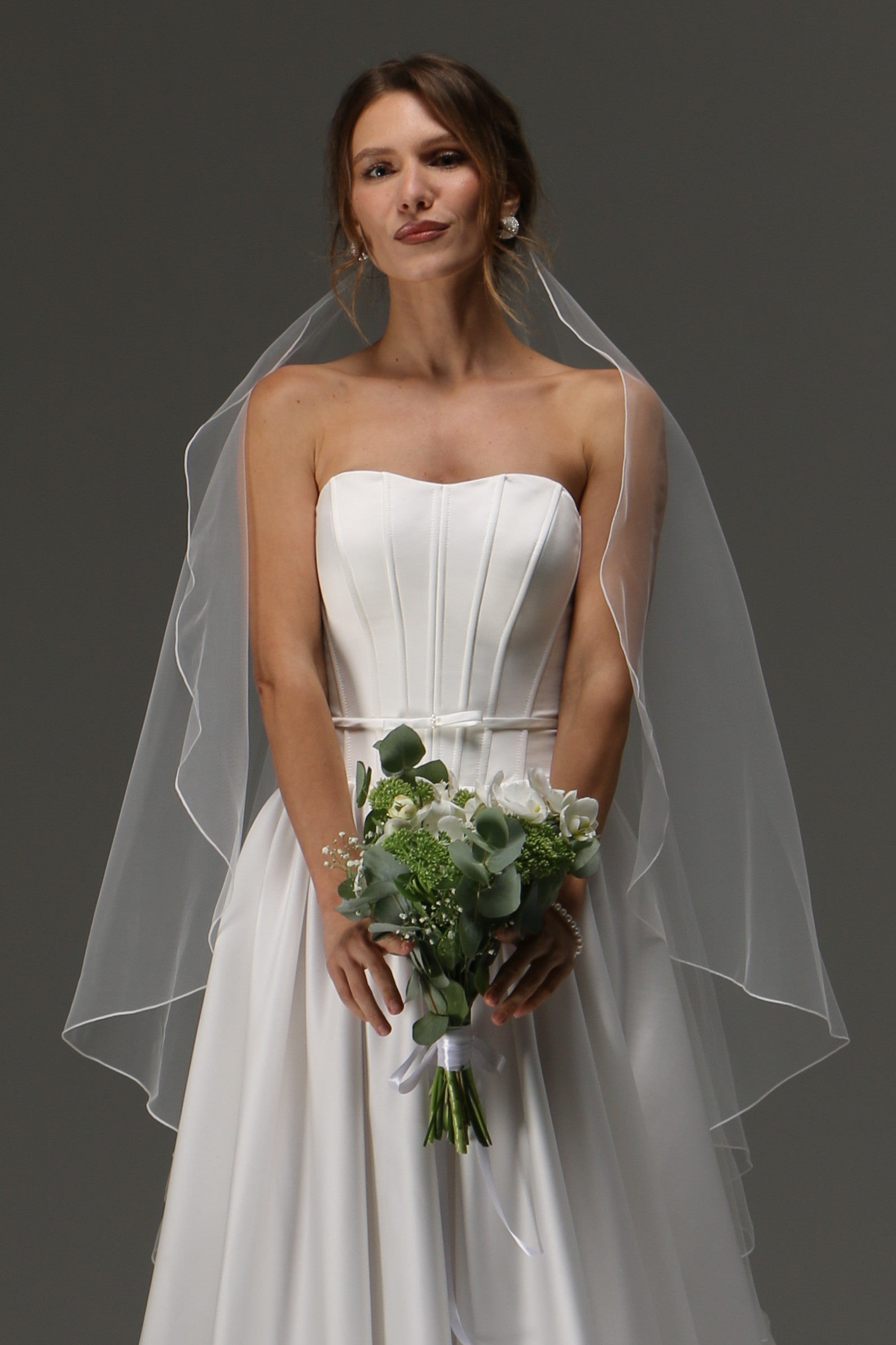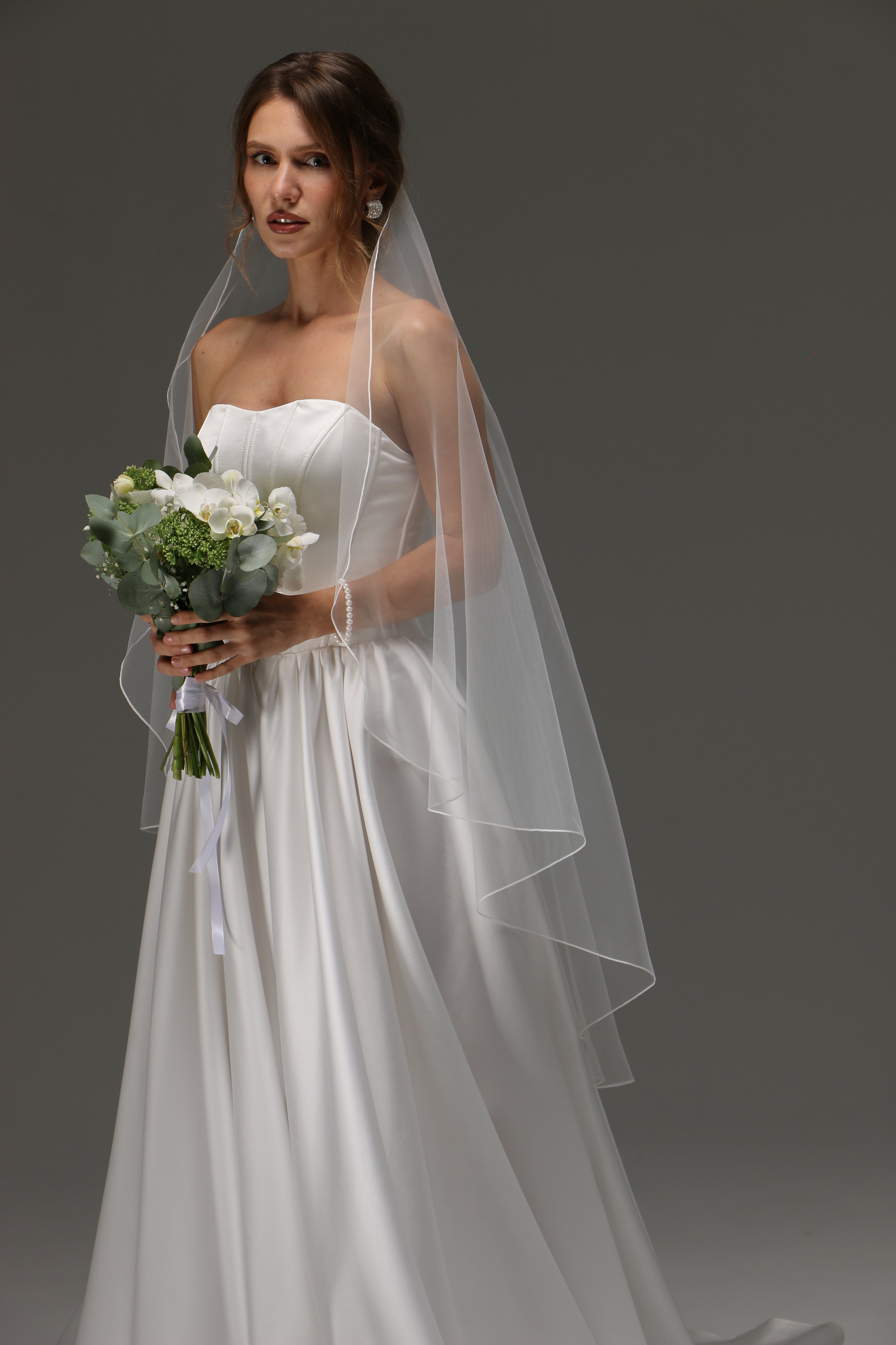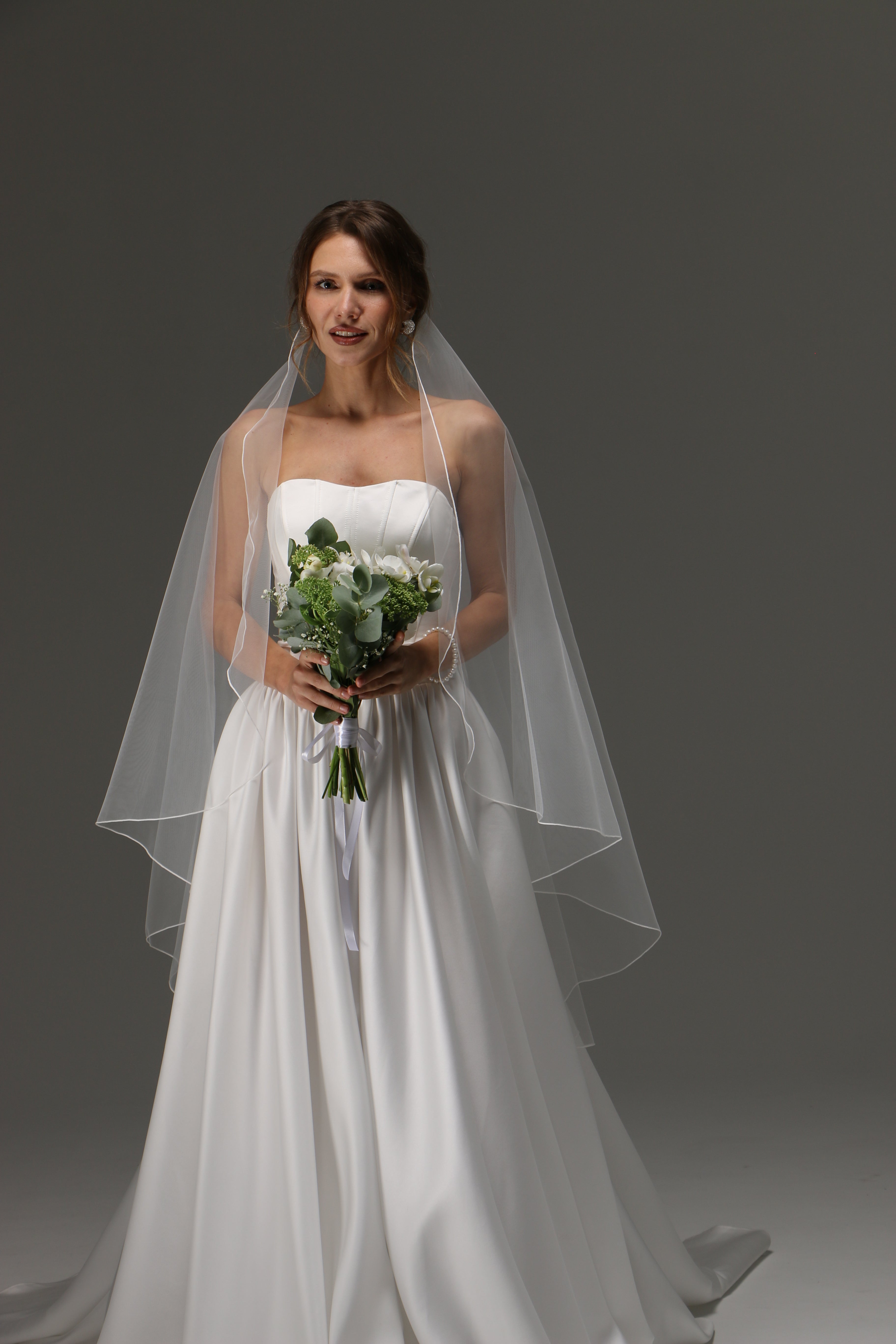 One Tier Cascade Veil with pencil Edge | Soft Classic Ivory Wedding Veil