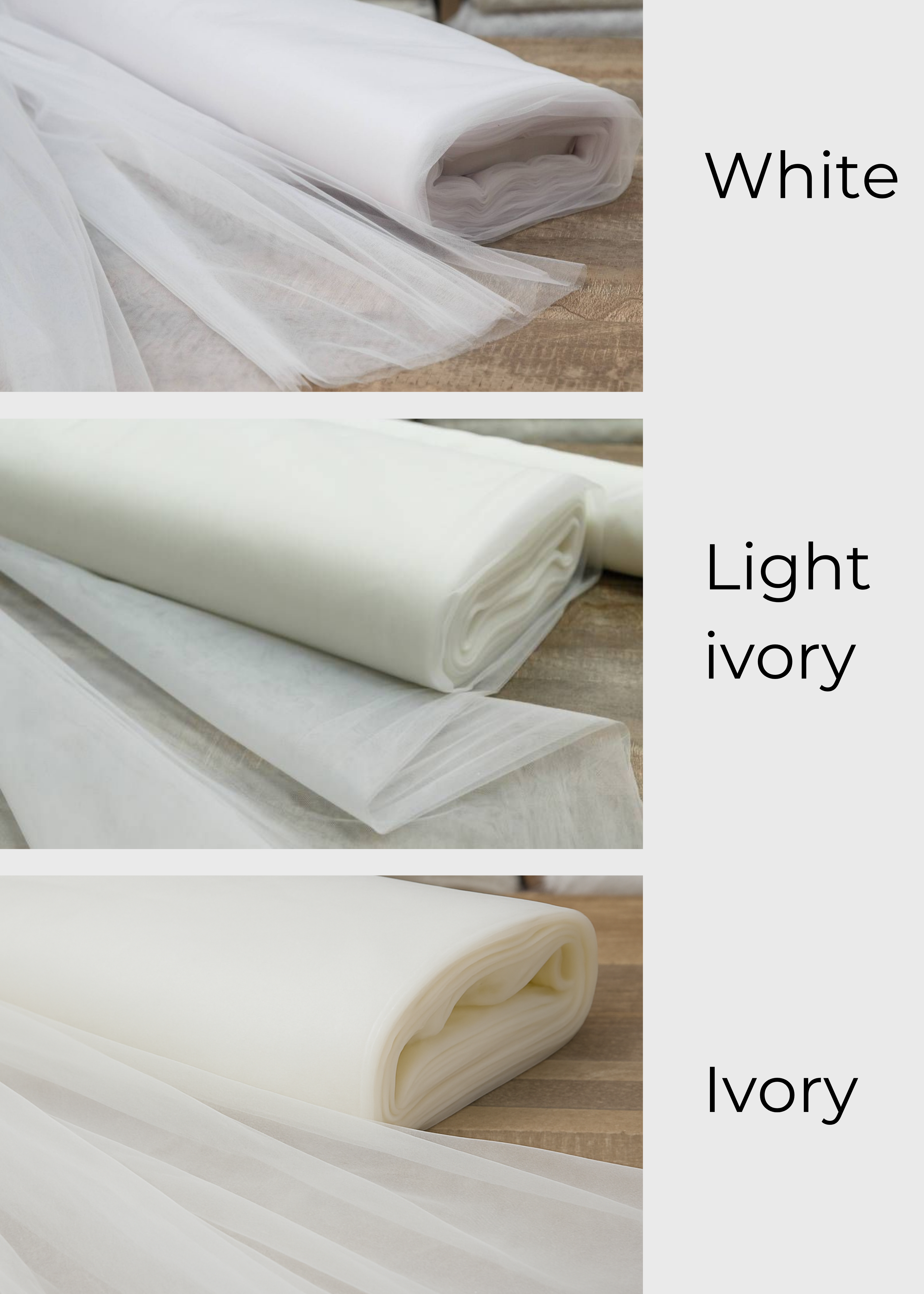 We use soft Italian tulle, known for its gentle drape and elegant, airy texture.