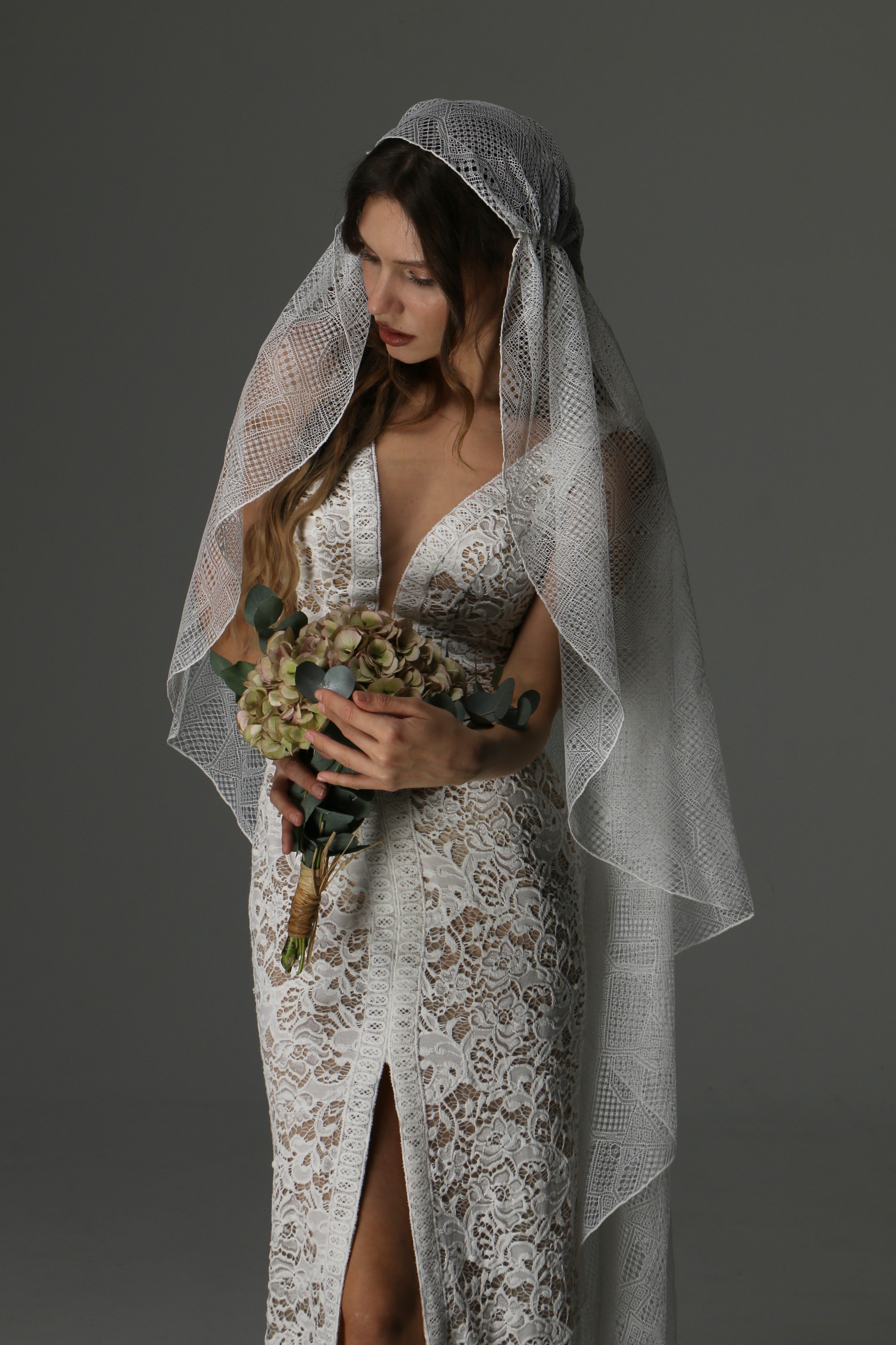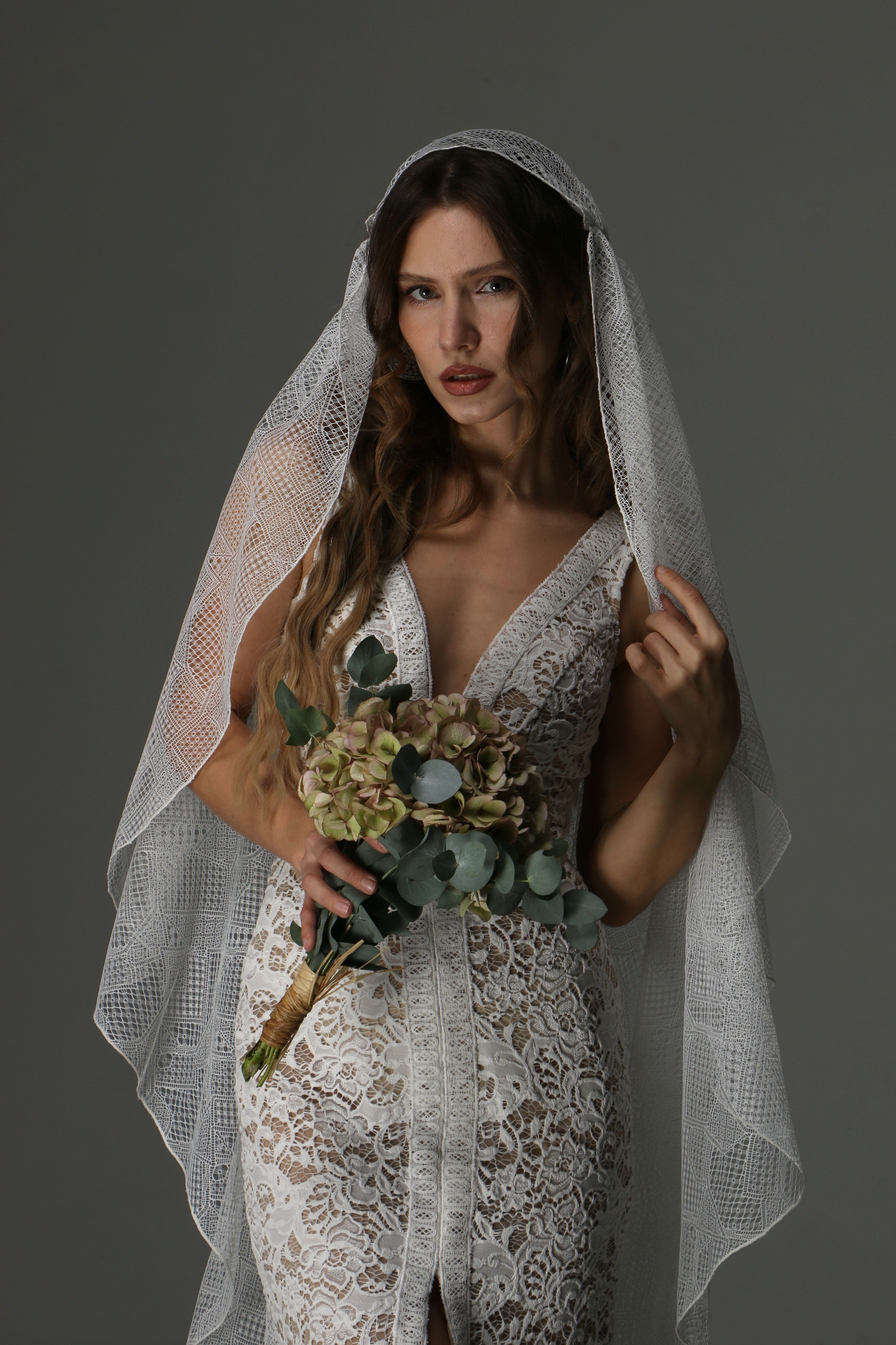 Romantic Boho Chantilly Lace Veil – One Tier Juliet Cap Style