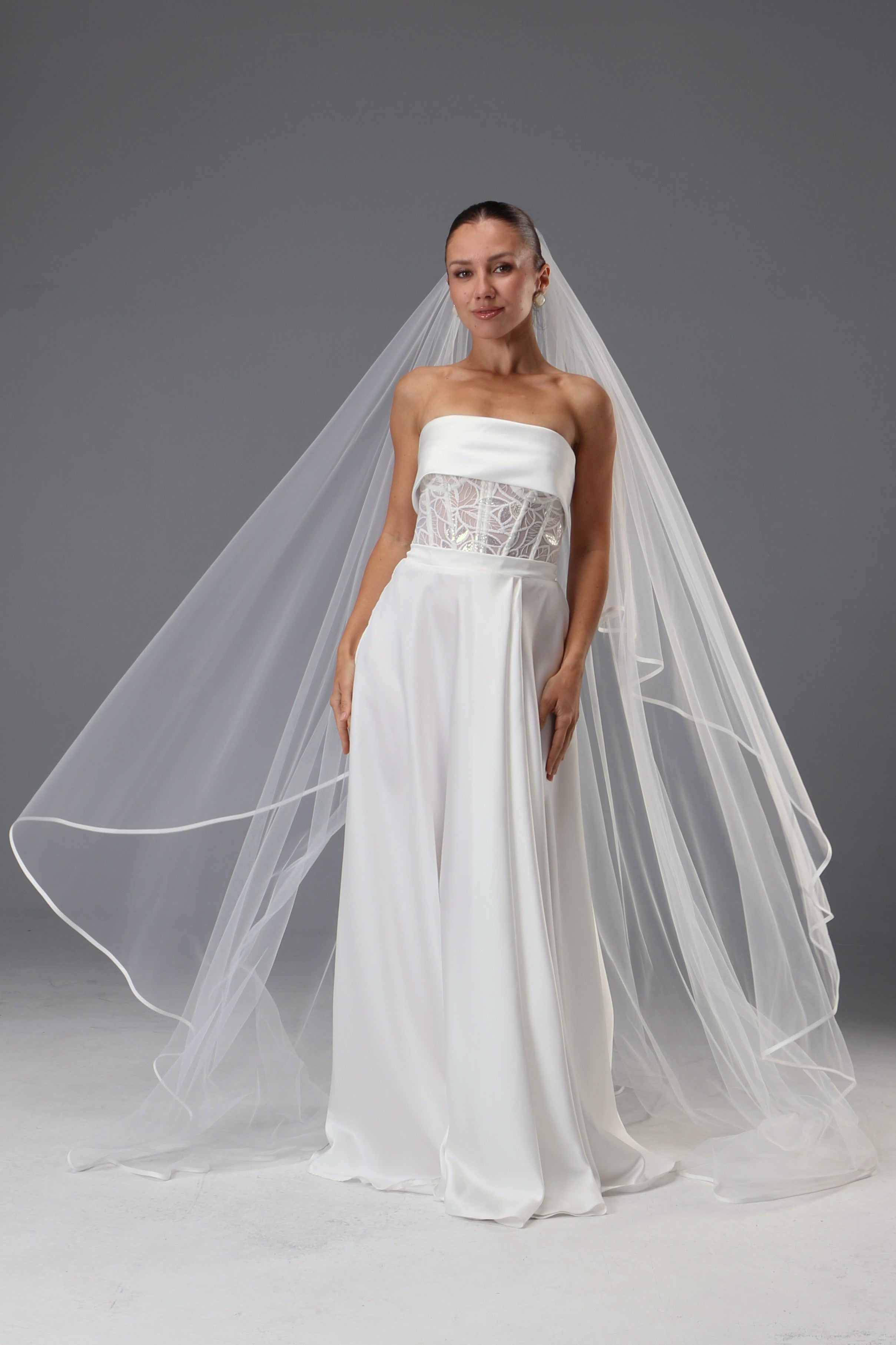 Satin Edge Bridal Veil, Double Tier Cathedral Wedding Veil